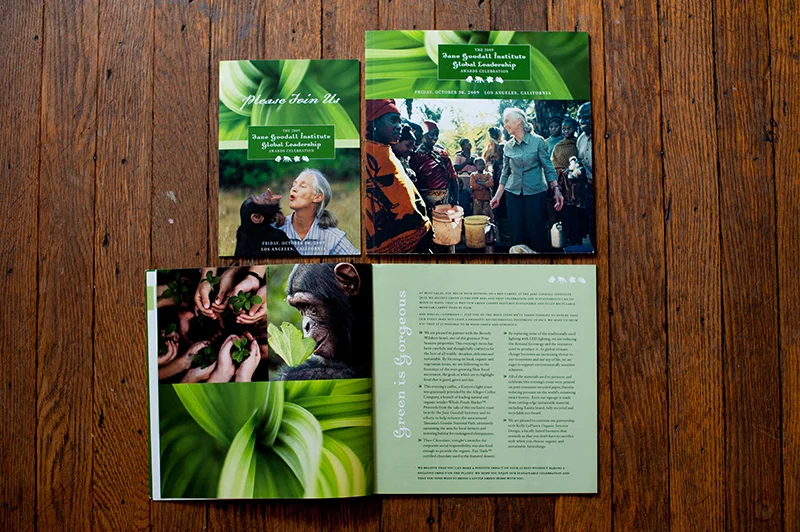 Invitation and program for the Jane Goodall Institute’s Global Leadership Awards Ceremony.